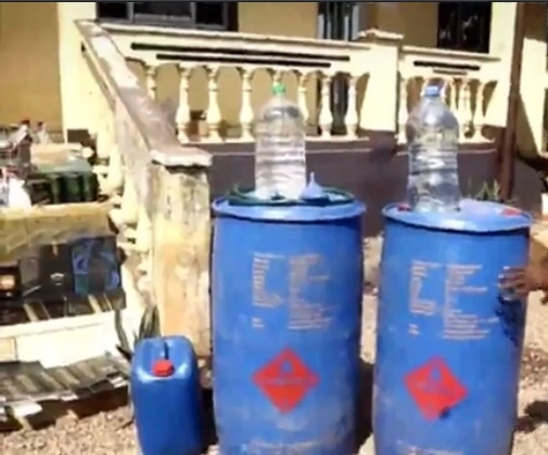 Amongst the items discovered in the plant were two big drums of alcohol equivalent to 500 liters each and 20 liters of an ingredient used in the production of whisky with empty whisky bottles ready to be filled.