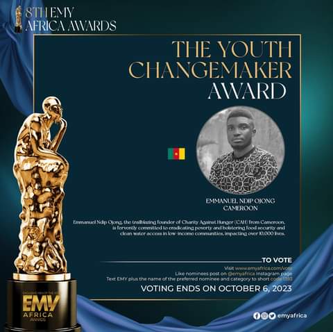 Emmanuel Ndip Ojong, is among the 7 youths nominated by Emy Africa Awards 2023, under the category of Youth Changemaker.